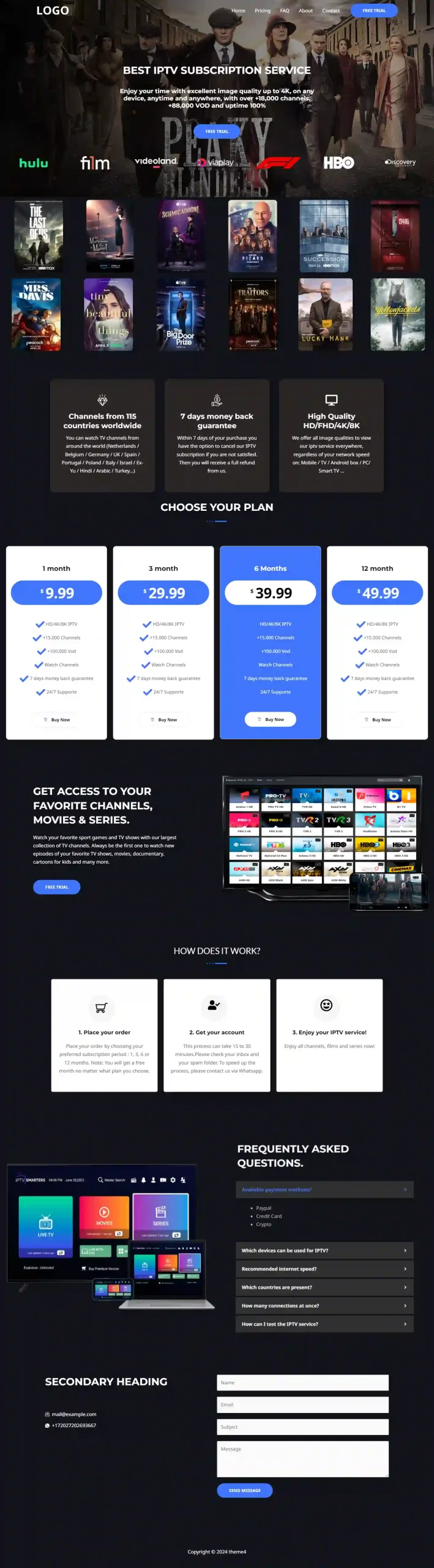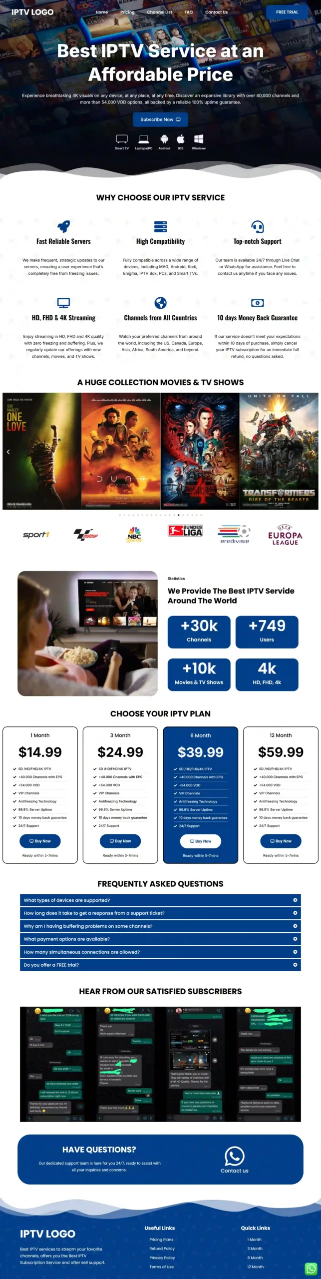 Our templates are 100% optimized for IPTV websites, Fast, secure, clean design.