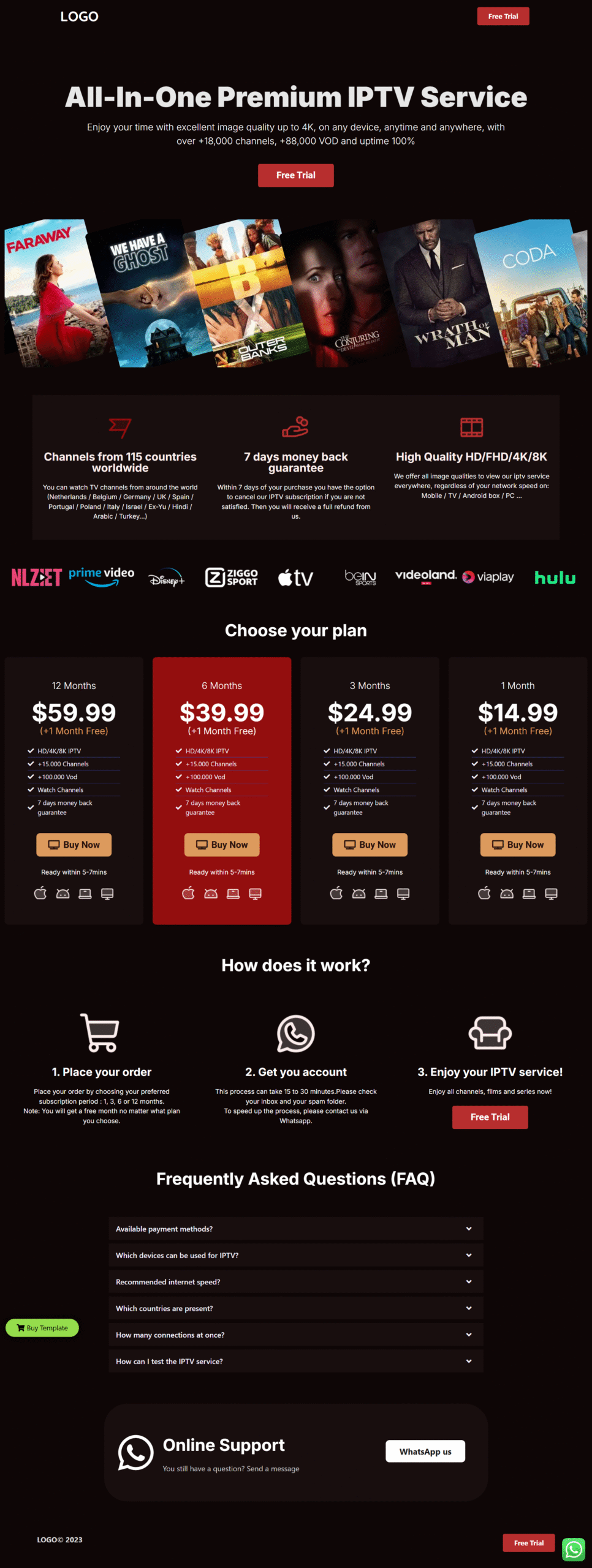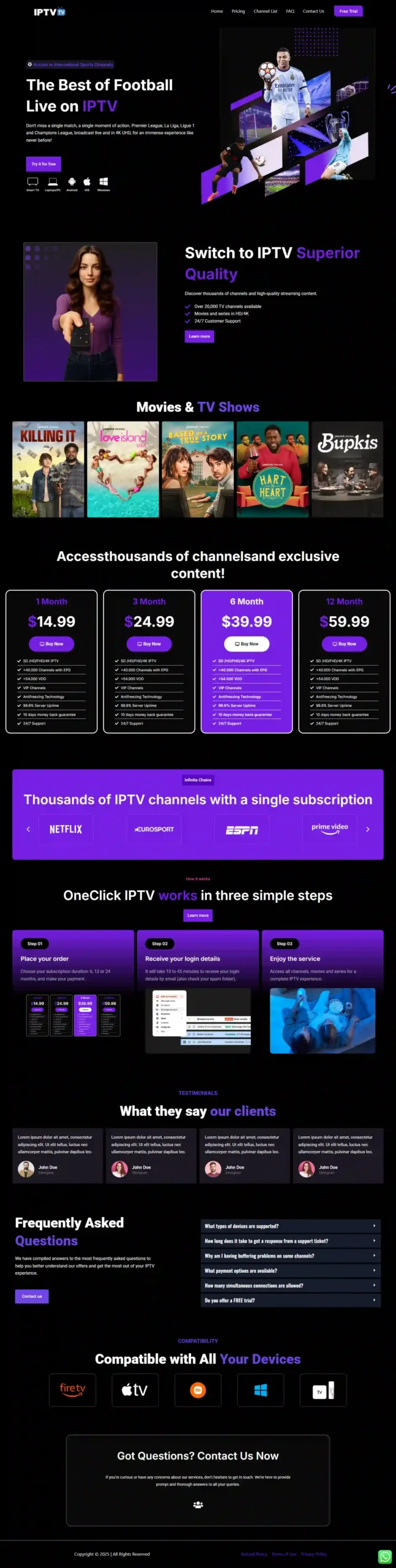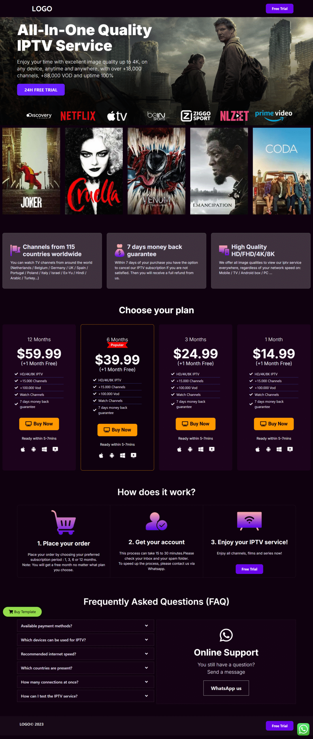 Based on some of the best IPTV websites, we created the highest converting templates.