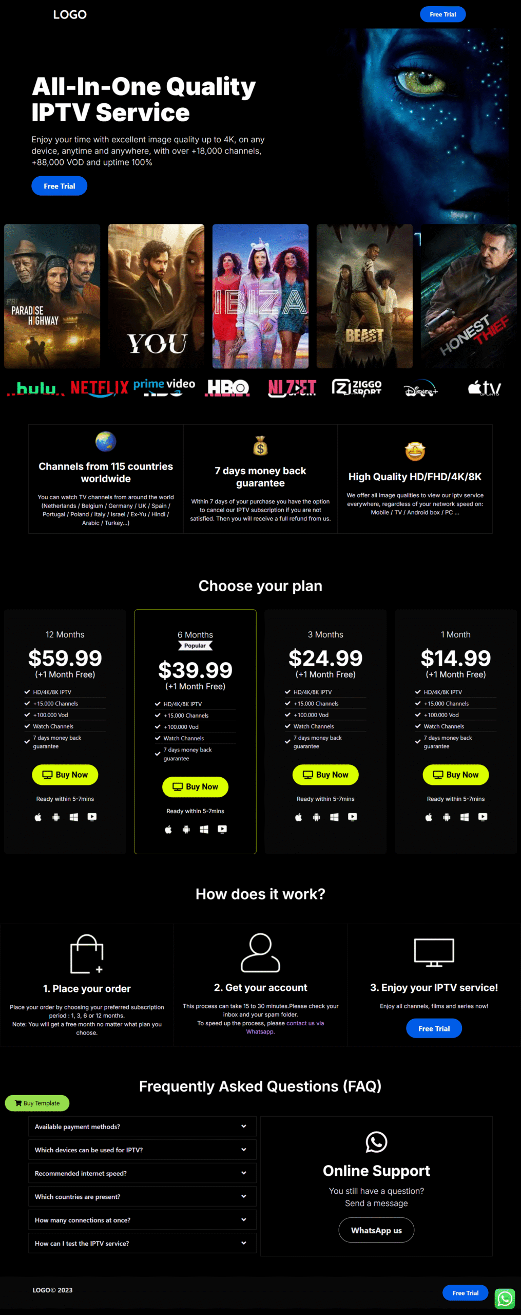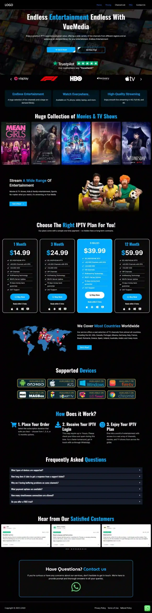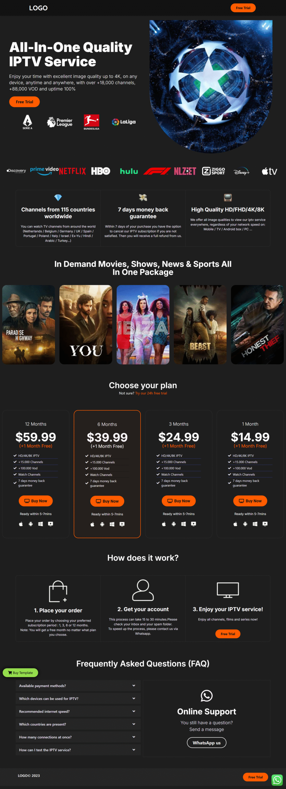 Based on some of the best IPTV websites, we created the highest converting templates.