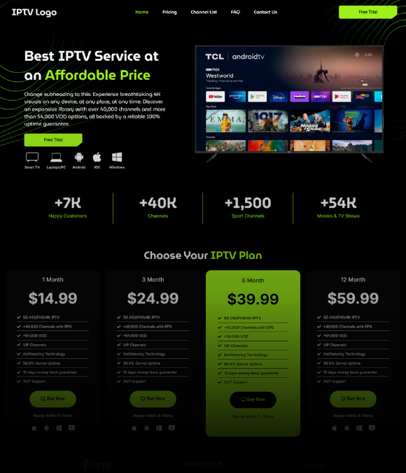 Creating a website from scratch is time-consuming and, if you hire a professional designer, expensive. Pre-designed IPTV templates take care of the heavy lifting for you. These templates come with layouts specifically built for IPTV services, so you don’t have to figure out how to structure your site.